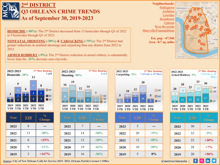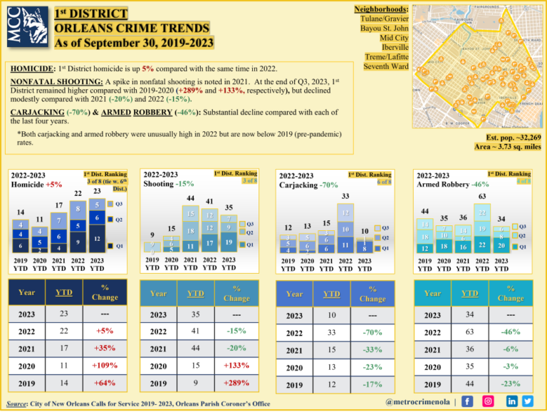 While still ranked 3rd of 8 NOPD Districts on HOMICIDE and NONFATAL SHOOTING, the 1st District…