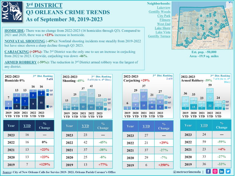 The 3rd District ranks 5 of 8 NOPD Districts on HOMICIDE and NONFATAL SHOOTING, and…