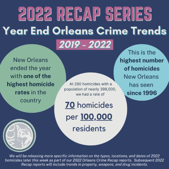 2022 Per Capita Rankings 8 HOMICIDES per 10,000 residents – ranked 4th of the 8 NOPD Districts 14 SHOOTING INCIDENTS per 10,000 residents – ranked 4th of the 8 NOPD Districts 8 CARJACKINGS per 10,000 residents – ranked 4th (tie with 8th District) of the 8 NOPD Districts 11 ARMED ROBBERIES per 10,000 residents – ranked 5th of the 8 NOPD…