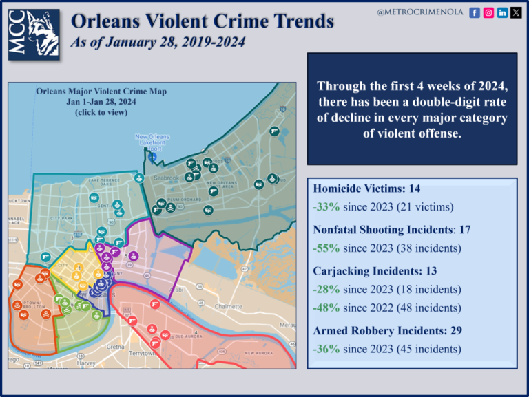 Orleans Violent Crime Map January 1-28, 2024 (click to view) A note about homicides While…