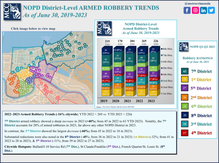 NOPD District-Level ARMED ROBBERY Trends as of June 30, 2019-2023
