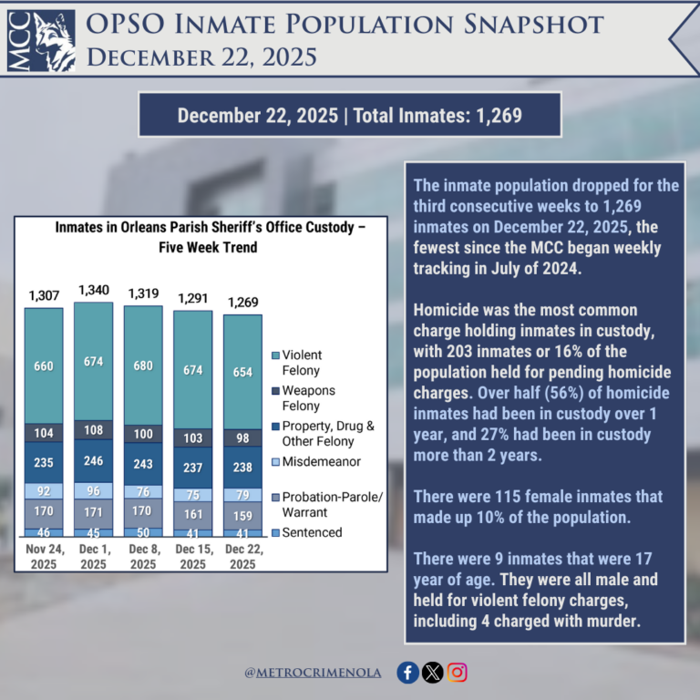 Orleans Parish Inmate Snapshot: December 22, 2025 Inmate DataDecember 23, 2025 Download PDF Read more