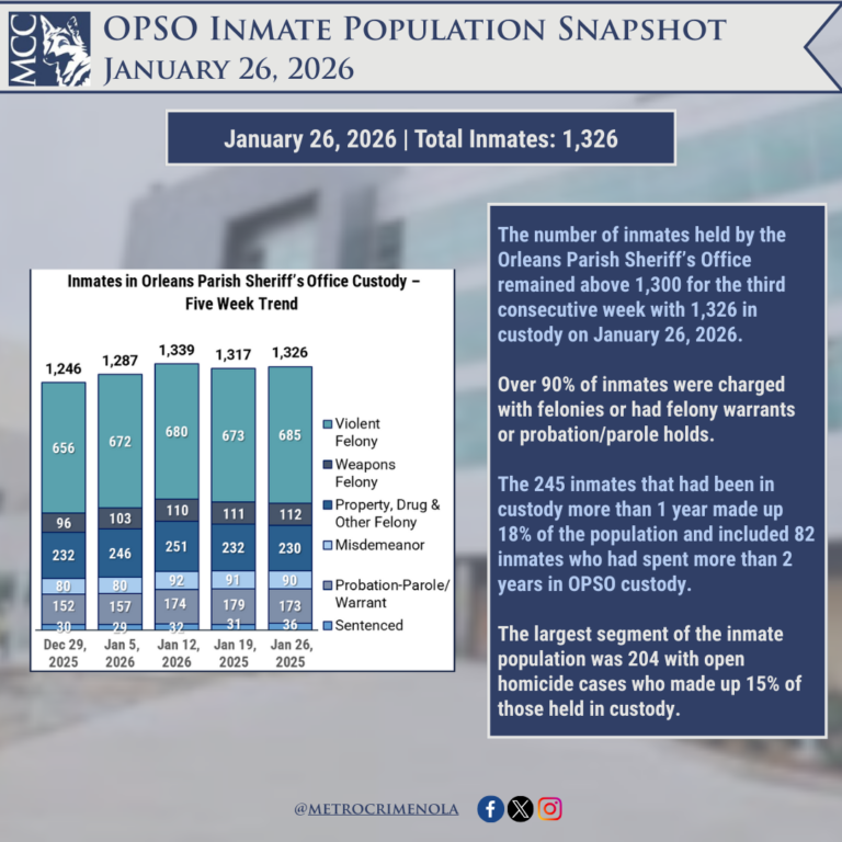 Orleans Parish Inmate Snapshot: January 26, 2026