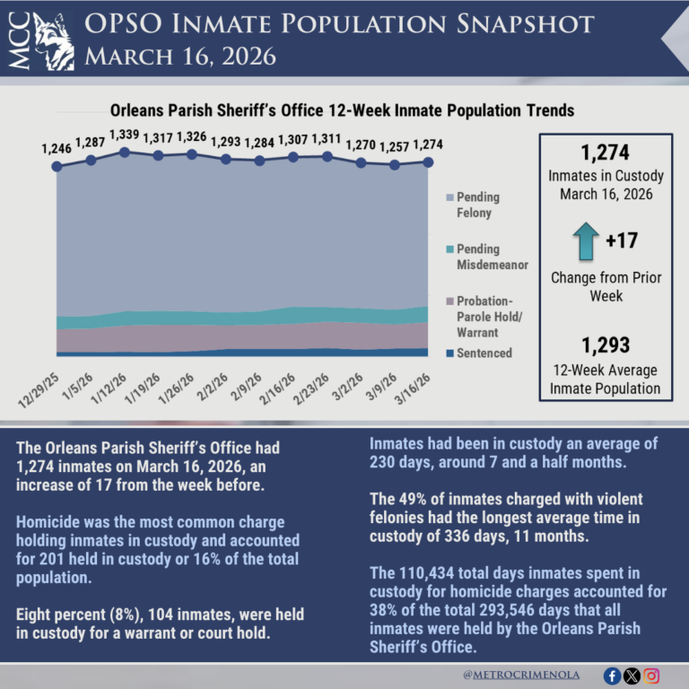 Orleans Parish Inmate Snapshot: March 16, 2026