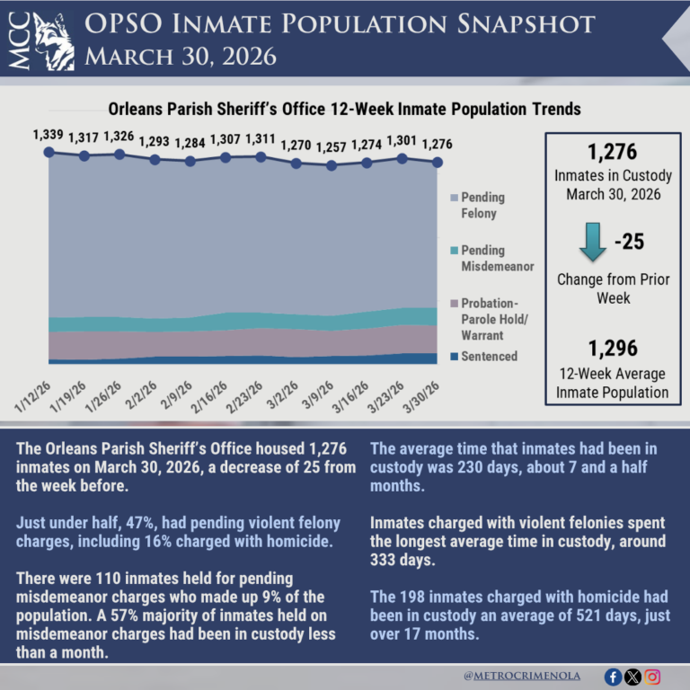 Orleans Parish Inmate Snapshot: March 30, 2026