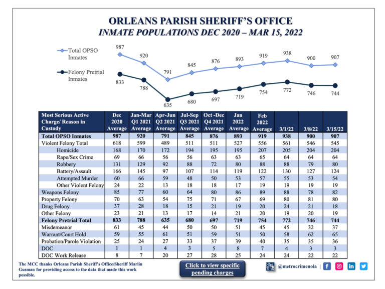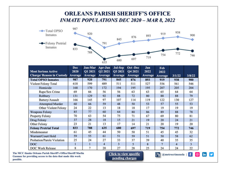 Inmate Population Highlights: 210 (23% of inmates) awaiting trial on murder charges 544 (60% of…