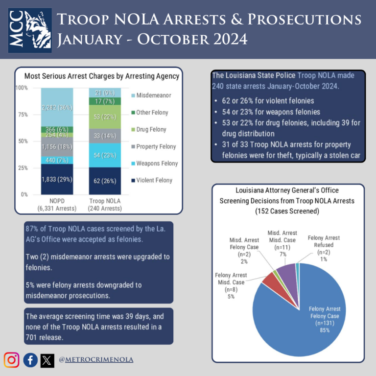 Troop NOLA Arrests & Prosecutions January – October, 2024 Arrests, Prosecution ReportsNovember 19, 2024 Download PDF Read more