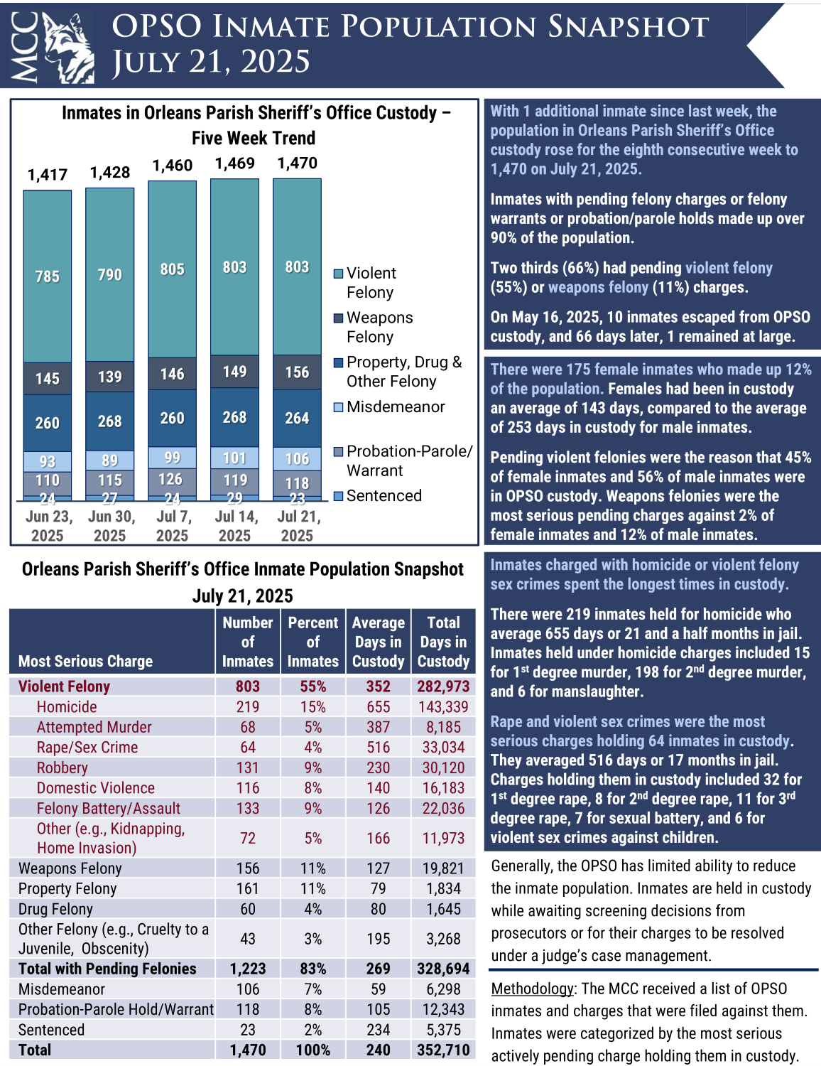 Download PDF July 22, 2025 Share this post Share on FacebookShare on Facebook Share on XShare on X Share on LinkedInShare on LinkedIn Post navigationPreviousPrevious post:OPSO Inmate Population Snapshot: July 14, 2025NextNext post:OPSO Inmate Population Snapshot: July 28, 2025