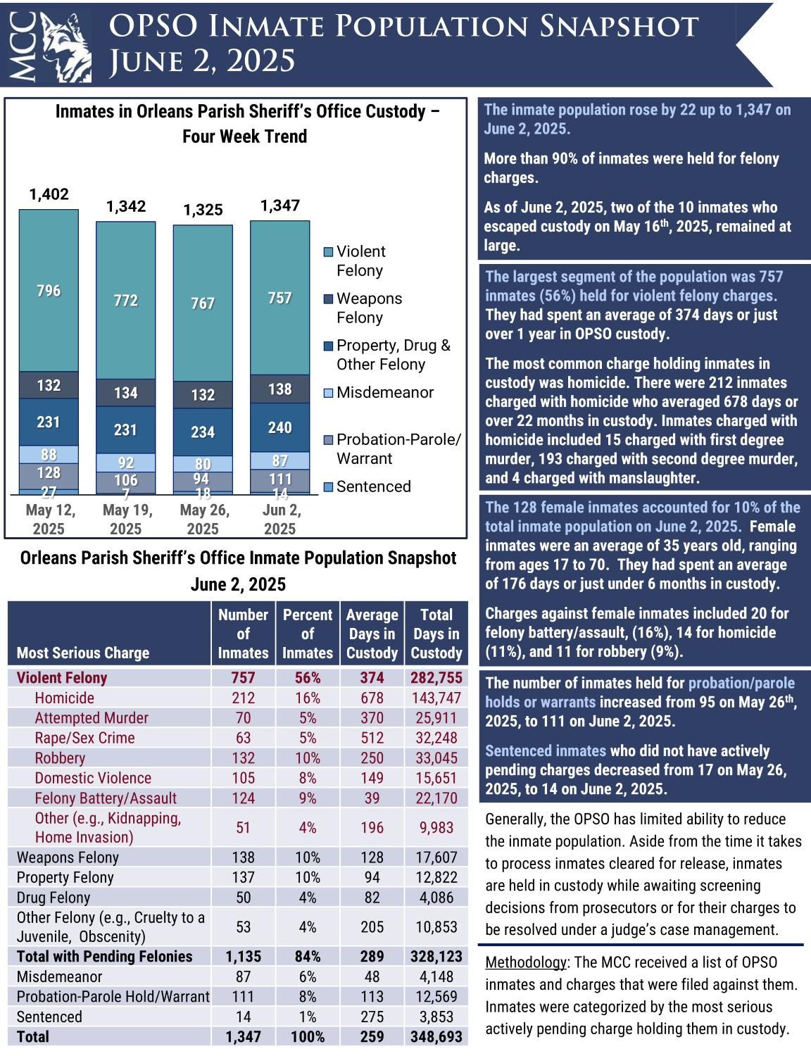 Download PDF June 4, 2025 Share this post Share on FacebookShare on Facebook Share on XShare on X Share on LinkedInShare on LinkedIn Post navigationPreviousPrevious post:Orleans Parish Inmate Snapshot: May 26, 2025NextNext post:Orleans Parish Inmate Snapshot: June 9, 2025
