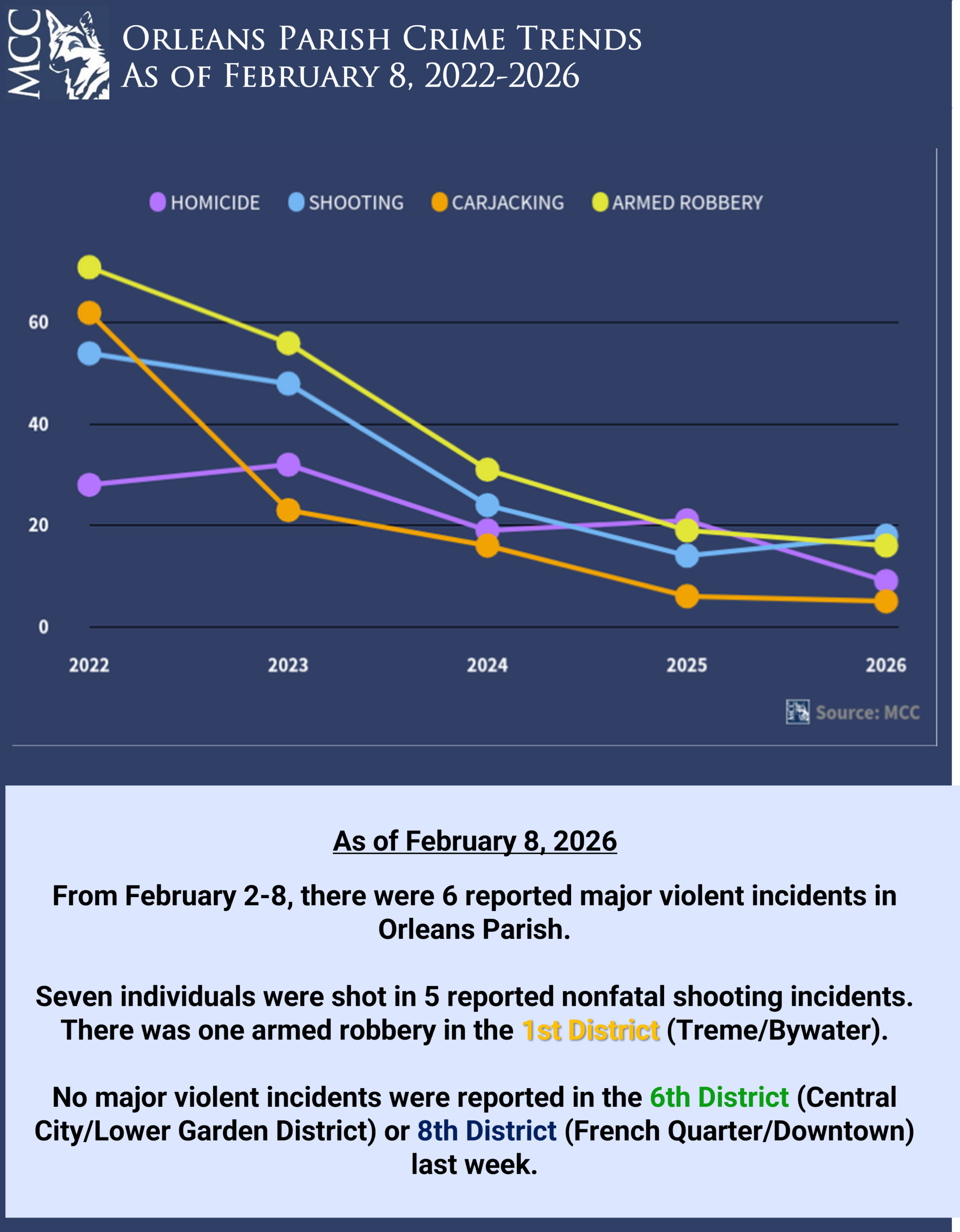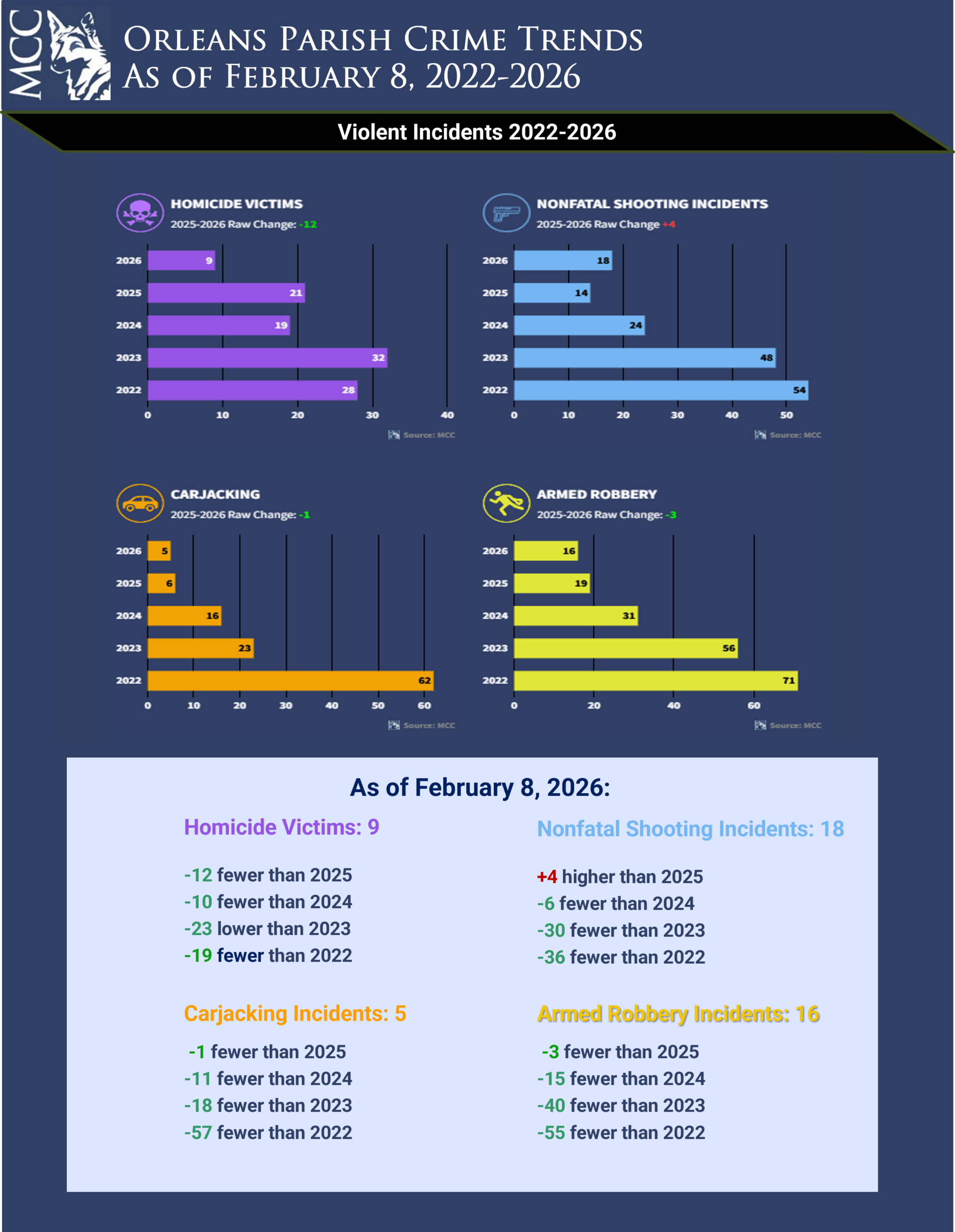 Download PDF February 9, 2026 Share this post Share on FacebookShare on Facebook Share on XShare on X Share on LinkedInShare on LinkedIn Post navigationPreviousPrevious post:Orleans Parish Inmate Snapshot: February 2, 2026NextNext post:Orleans Parish Inmate Snapshot: February 9, 2026
