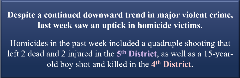 - To date, homicide in 2024 is +9% higher than 2020 and +31% higher than 2019.