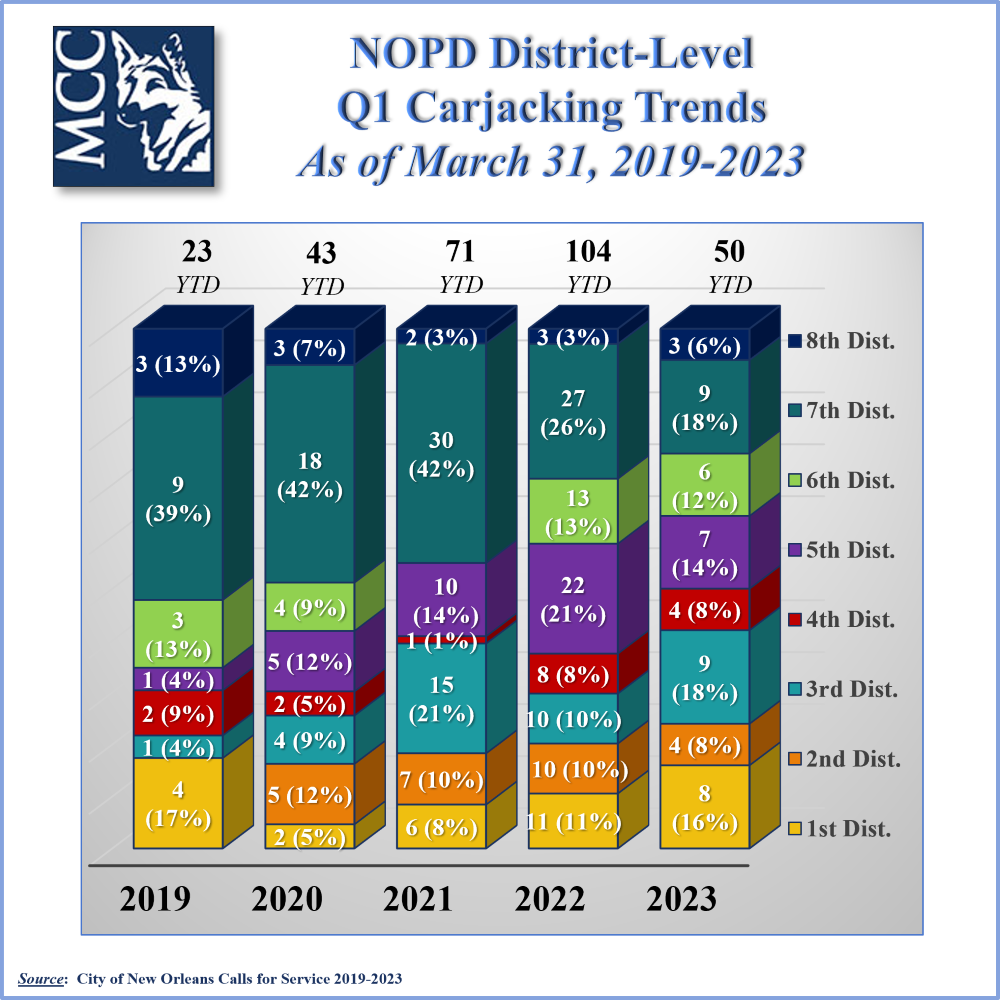 CARJACKING in the 2nd DIstrict has followed a similar pattern as the rest of the city – far higher rates and a more drastic spike in Q1 2022 compared to other years/categories