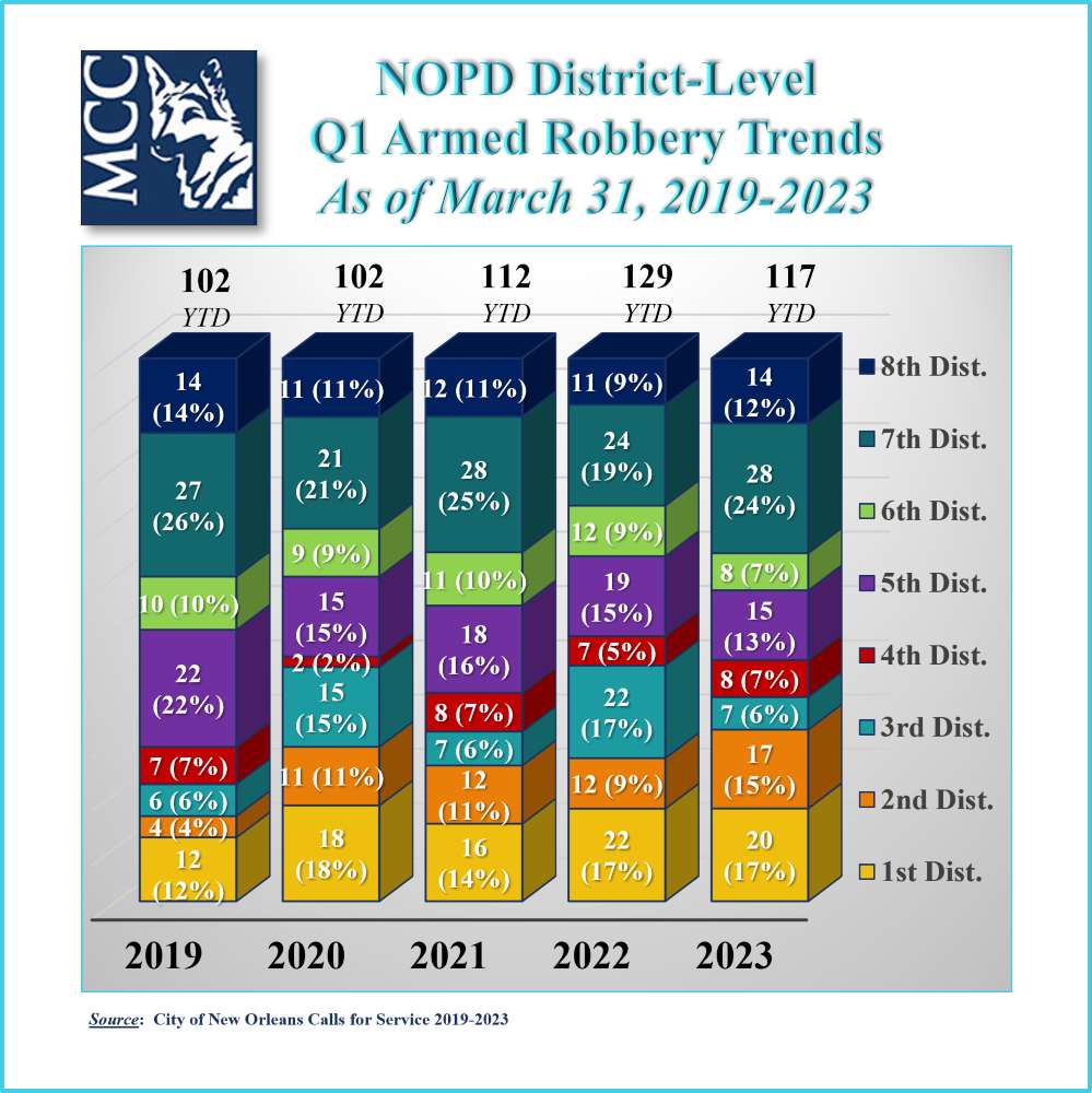 Of note, the 2nd District ranks 3rd among the eight NOPD Districts in reported ARMED ROBBERY incidents.