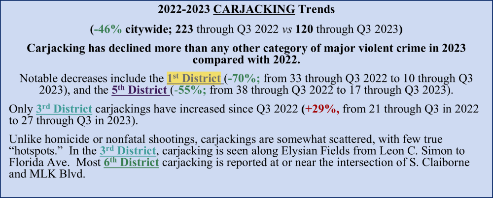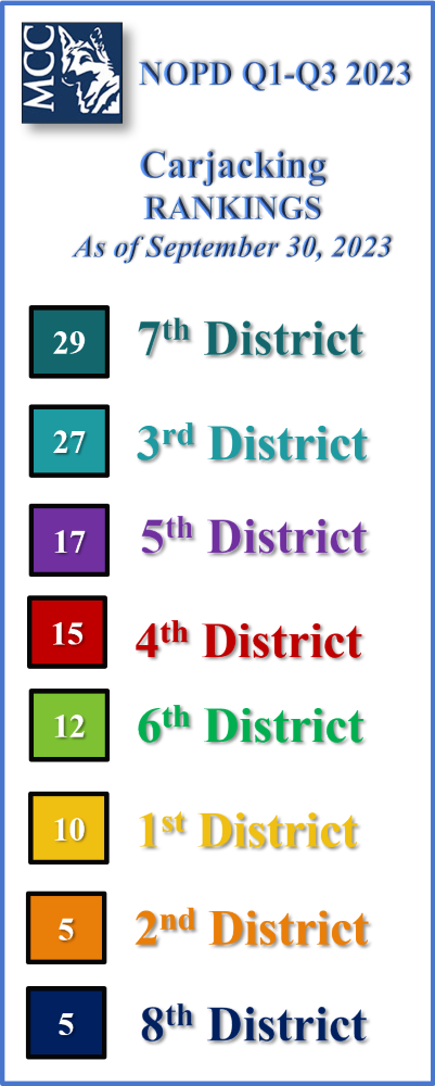 CLICK MAP TO VIEW 2023 Carjacking Locations October 15, 2023 Share this post Share on FacebookShare on Facebook Share on XShare on X Share on LinkedInShare on LinkedIn Post navigationPreviousPrevious post:Q3 NOPD District-Level Armed Robbery Trends 2019-2023NextNext post:Q3 NOPD District-Level Shooting Trends 2019-2023